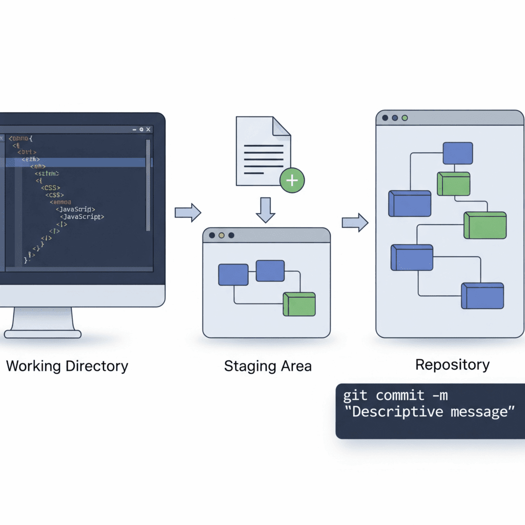 Anda sudah berhasil membuat repository. Fantastis! Sekarang, bagaimana cara menyimpan perubahan yang Anda buat pada proyek? Di sinilah kita akan mempelajari alur kerja paling fundamental dalam Git, yaitu siklus Modify -> Stage -> Commit. Memahami siklus ini adalah kunci untuk menggunakan Git secara efektif. Mari kita pecah satu per satu. Tiga “Area” […]